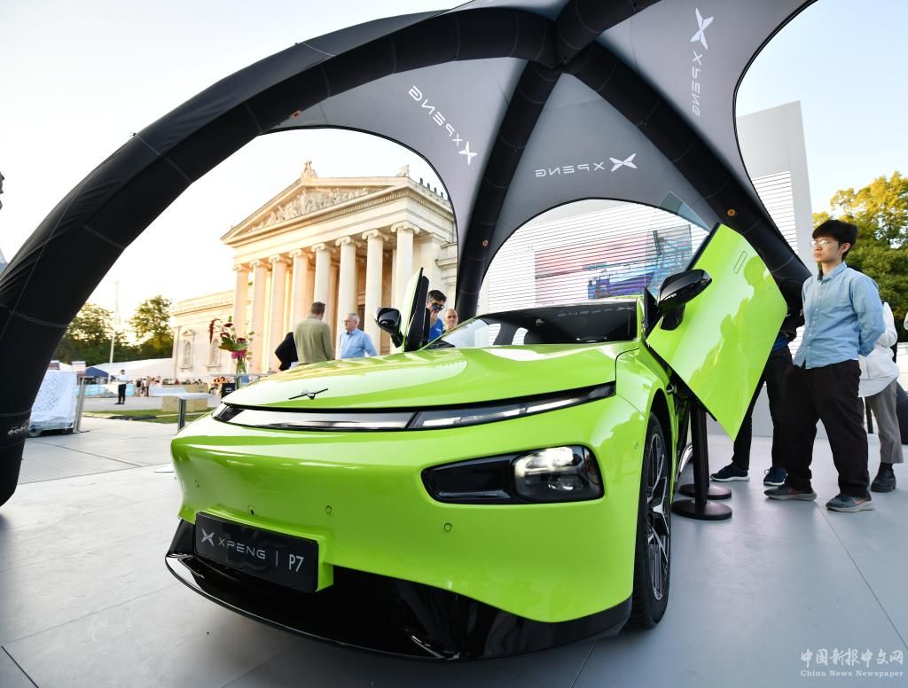 9月5日,人們?cè)诘聡?guó)慕尼黑國(guó)際車展的城市公共展示區(qū)參觀小鵬汽車。新華社記者任鵬飛攝