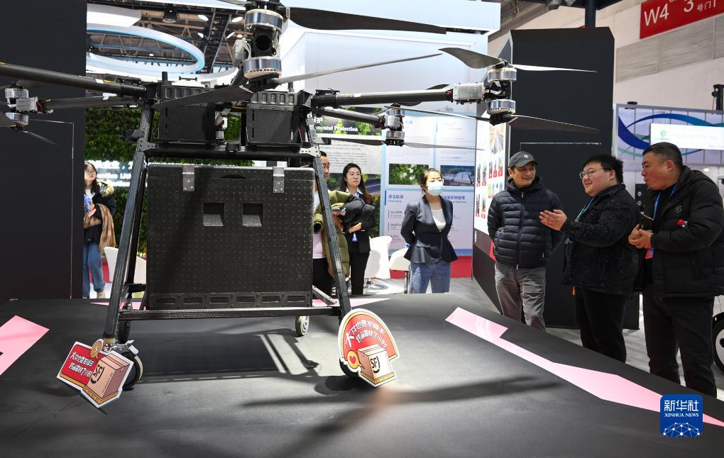 在智能汽車鏈展區(qū),參觀者在順豐速運展臺參觀無人機快遞系統(tǒng)(11月30日攝)。