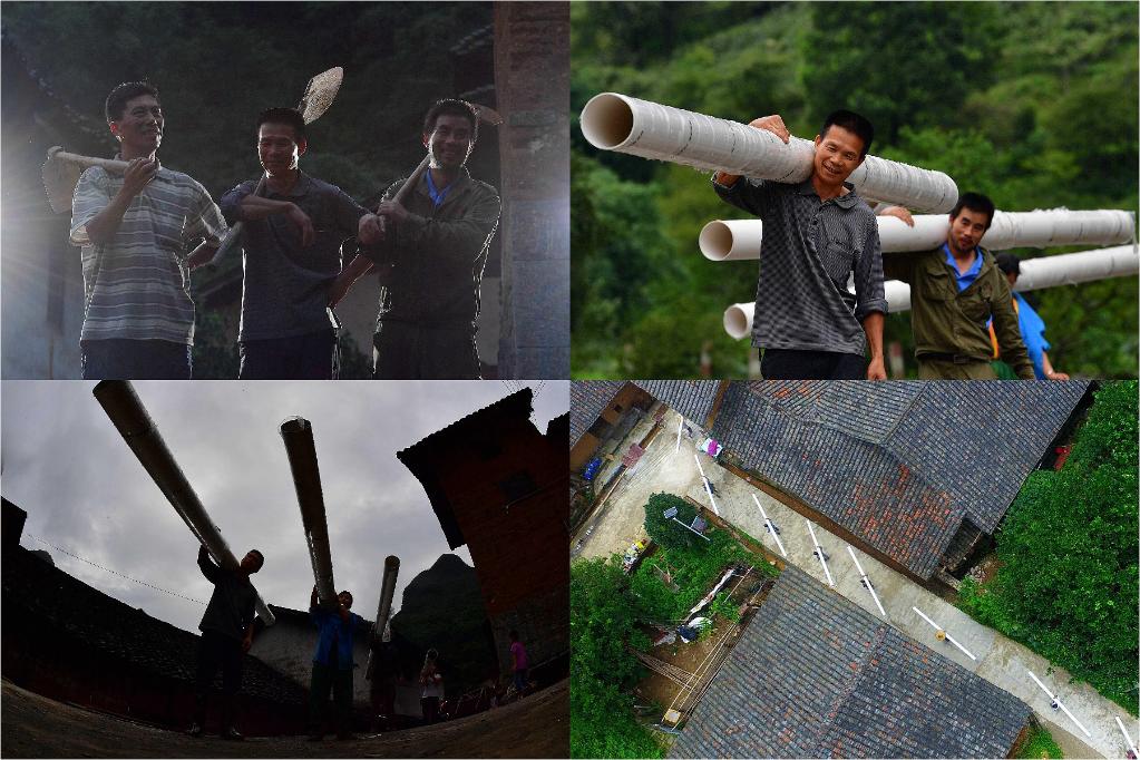 拼版照片:融安縣東起鄉(xiāng)銅板屯村民修建人畜飲水工程的場(chǎng)景。上左:銅板屯村民在修建人畜飲水工程(2017年3月5日新華社記者張愛林?jǐn)z);上右:村民龍革雄(左)和龍飛聯(lián)搬運(yùn)排污管道(2017年8月15日新華社記者黃孝邦攝);下左:銅板屯村民們?cè)诎徇\(yùn)排污管道(2017年8月15日新華社記者黃孝邦攝);下右:銅板屯村民們?cè)诎徇\(yùn)排污管道(2017年8月15日新華社記者黃孝邦攝)。