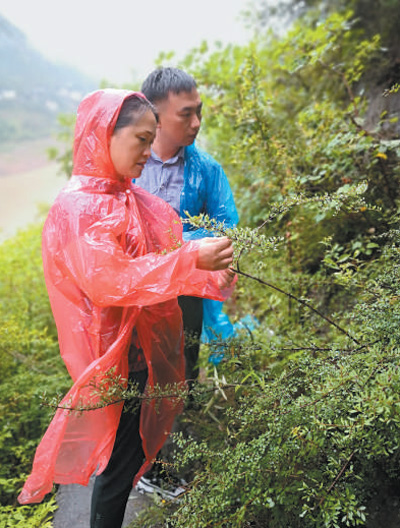 長江珍稀植物培育基地研究員們在進(jìn)行野外植被調(diào)查。