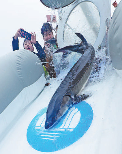 3月25日,長江三峽中華鱘放流活動現(xiàn)場。