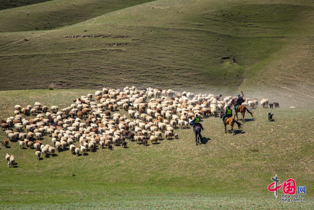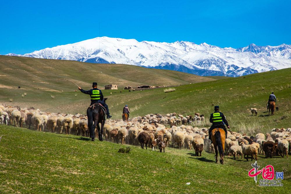 中國網(wǎng)訊(記者 趙娜 通訊員 王鵬飛、鄭明明、周航生)進入四月份,隨著氣溫逐漸升高,新疆伊犁邊境高海拔地區(qū)冰雪融化、草場逐步返青,生活在當(dāng)?shù)氐哪撩耜懤m(xù)開啟了一年一度的春季轉(zhuǎn)場,成千上萬只牲畜從烏拉海溝陸續(xù)遷徙至水草充沛的呼爾賽春草場。為守護牧民,幫助牧民順利安全將牧畜轉(zhuǎn)場,2023年4月23日,3名由新疆伊犁邊境管理支隊紅卡子邊境派出所民(輔)警組織成立“馬背上的護牧隊”,攜帶食物、日常使用藥品等物資,認真勘察轉(zhuǎn)場路線,隨時關(guān)注天氣變化,維護秩序,解決轉(zhuǎn)場途中遇到的困難,全程跟進護送20余公里,直到牧民及羊群全部安全到達牧場。