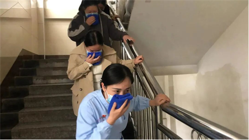 隨后演練正式開始,演練模擬醫(yī)院六樓護(hù)士站因不明原因引起火災(zāi),工作人員發(fā)現(xiàn)后緊急采取應(yīng)急措施,科室負(fù)責(zé)人啟動(dòng)消防應(yīng)急預(yù)案,并迅速組織開展應(yīng)急疏散和先期滅火處置,樓內(nèi)人員聽到消防警報(bào)后,在統(tǒng)一指揮下,彎腰低姿捂口鼻快速有序從消防通道撤離至安全區(qū)域。大家按預(yù)案疏散到醫(yī)院空曠的大坪后,在現(xiàn)場講解演示了滅火器的使用方法,并組織醫(yī)護(hù)人員進(jìn)行了滅火器滅火的實(shí)地演練。