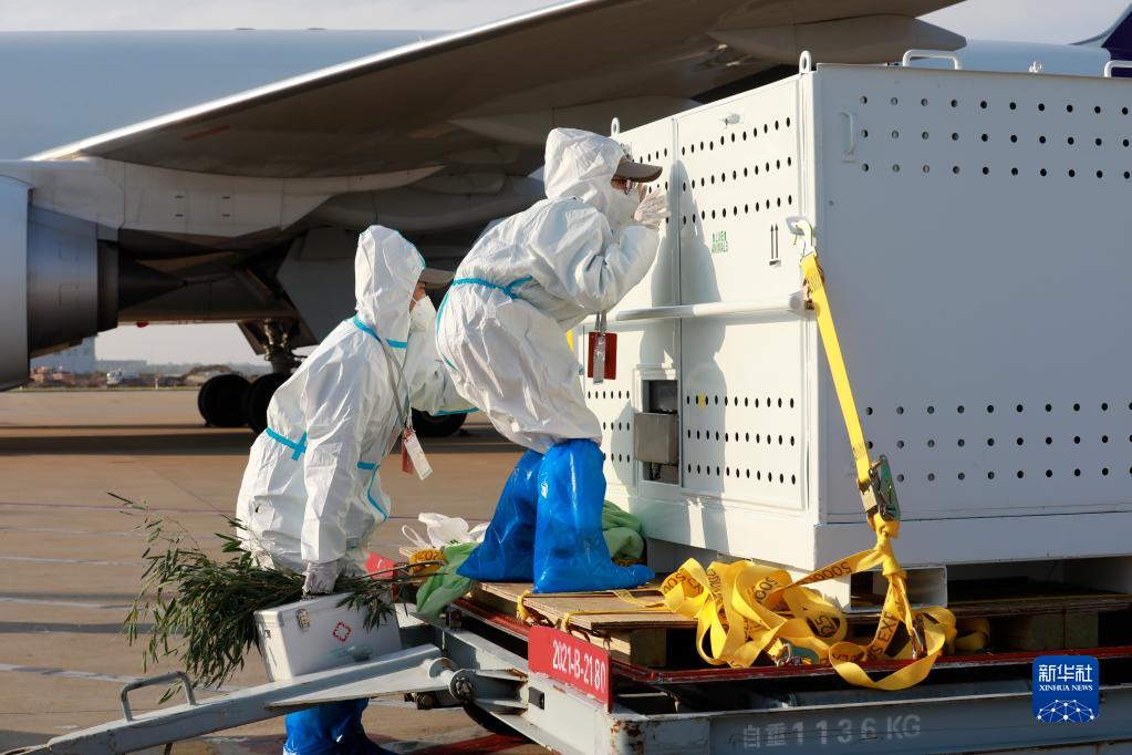 4月27日,旅美歸國大熊貓“丫丫”抵達(dá)上海浦東國際機(jī)場。新華社發(fā)(張海波 攝)