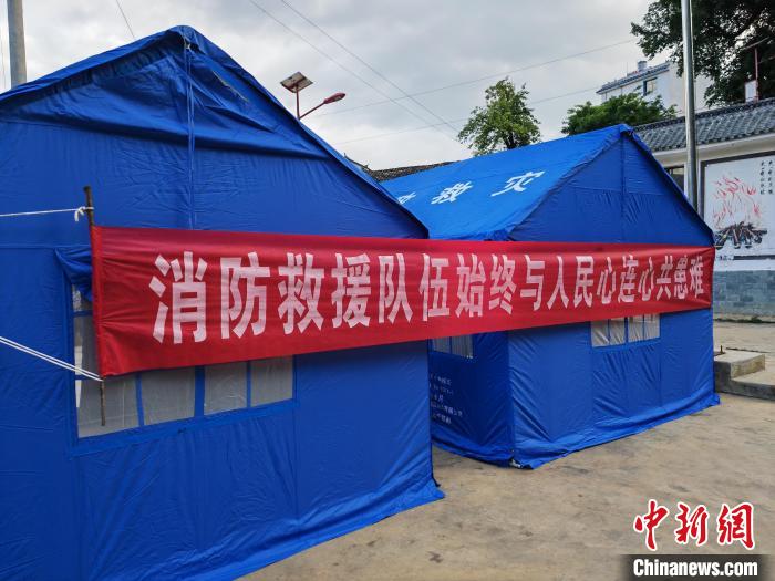 圖為地震現(xiàn)場(chǎng)搭起的的應(yīng)急救災(zāi)帳篷?!≡颇鲜∠谰仍傟?duì)供圖