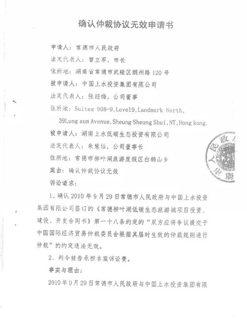 常德市政府提出確認(rèn)仲裁協(xié)議無效的申請。受訪者提供