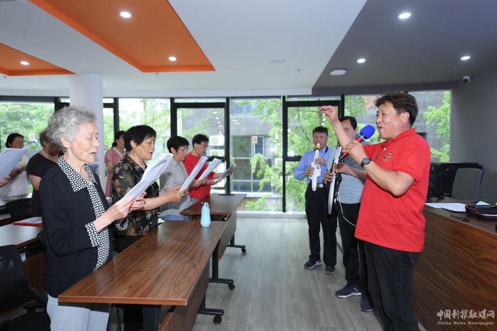 在浙江省湖州市愛山街道利民社區(qū),一個(gè)公益組織的聲樂老師和樂手帶領(lǐng)老年居民開展合唱活動(dòng)(2023年5月29日攝)。新華社記者 翁忻旸 攝