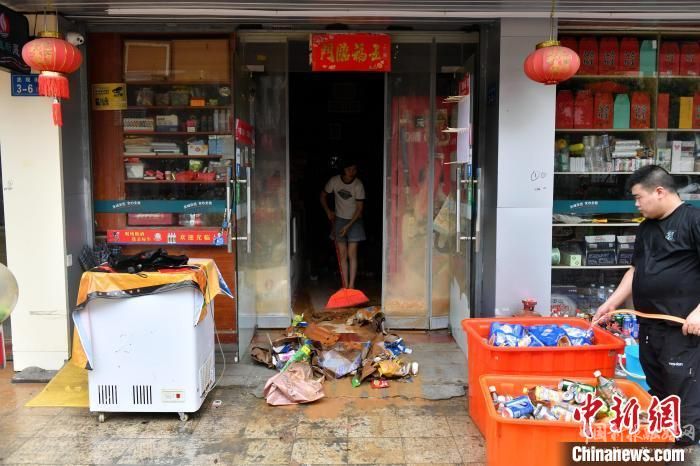 7月29日,受今年第5號(hào)臺(tái)風(fēng)“杜蘇芮”影響,福州市閩侯縣南嶼鎮(zhèn)忠觀街出現(xiàn)內(nèi)澇積水,許多店鋪被淹。積水退去后,市民積極開(kāi)展生產(chǎn)自救。