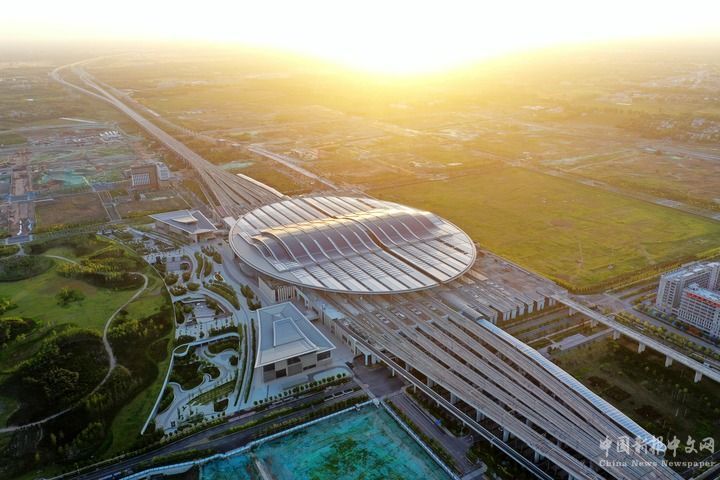 從高空俯瞰,雄安高鐵站外觀呈水滴狀橢圓造型,恰似一滴青蓮上的露珠。從這里出發(fā),19分鐘可達(dá)北京大興國(guó)際機(jī)場(chǎng),50分鐘可達(dá)北京西站,雄安融入首都1小時(shí)交通圈。