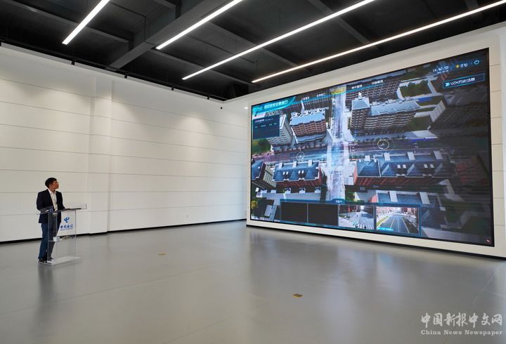 雄安新區(qū)中國(guó)電信智慧城市產(chǎn)業(yè)園的工作人員展示數(shù)字道路運(yùn)營(yíng)系統(tǒng)(2023年3月24日攝)。新華社記者 牟宇 攝