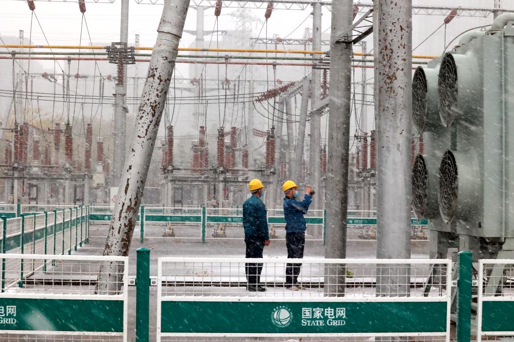 國(guó)網(wǎng)壽光市供電公司變電運(yùn)維人員冒著風(fēng)雪檢查變電站積雪情況。(國(guó)網(wǎng)壽光市供電公司供圖)