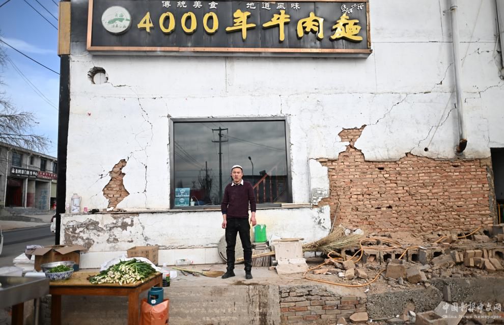 35歲的馬俊海家住青海省海東市民和回族土族自治縣官亭鎮(zhèn)。在積石山6.2級地震中,馬俊海家中經(jīng)營的拉面館與瓷磚店受損。地震發(fā)生后,馬俊海和家人顧不上搶救受損的財產(chǎn),而是忙著幫助鄰居們開展自救。