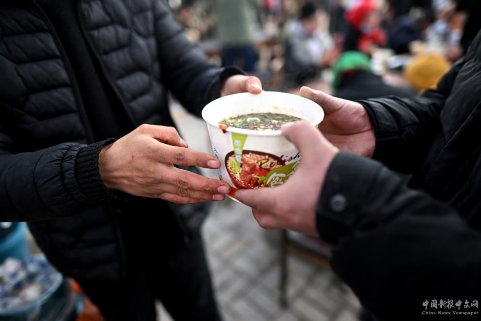 12月20日,在青海省民和縣官亭鎮(zhèn),當(dāng)?shù)厝罕娊舆^拉面。