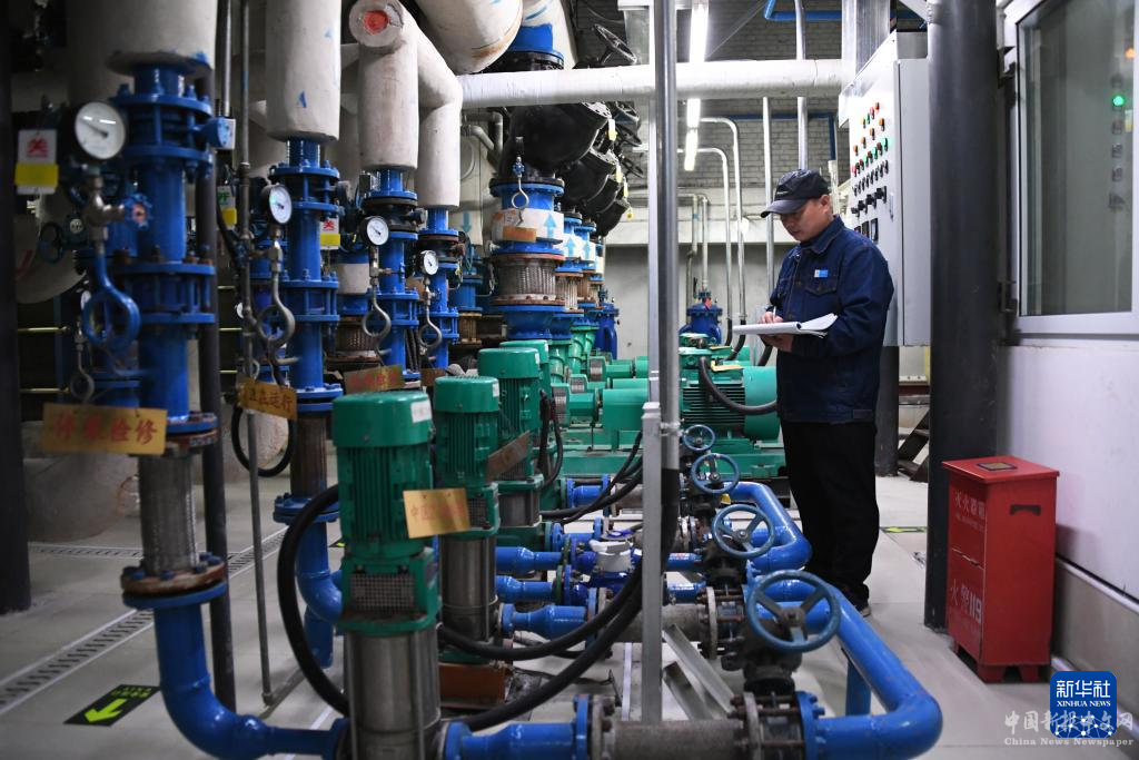 12月23日,在北京交通大學(xué)供暖交換站,工作人員查看供暖設(shè)備運(yùn)行情況。新華社圖片