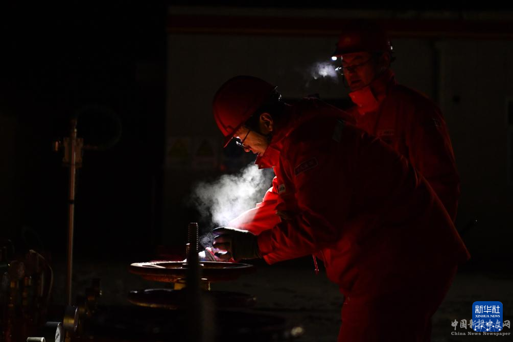 12月22日晚,在陜西省延安市安塞區(qū),中國(guó)石油長(zhǎng)慶油田分公司第一采氣廠作業(yè)七區(qū)工作人員在巡檢天然氣輸氣設(shè)備。新華社圖片