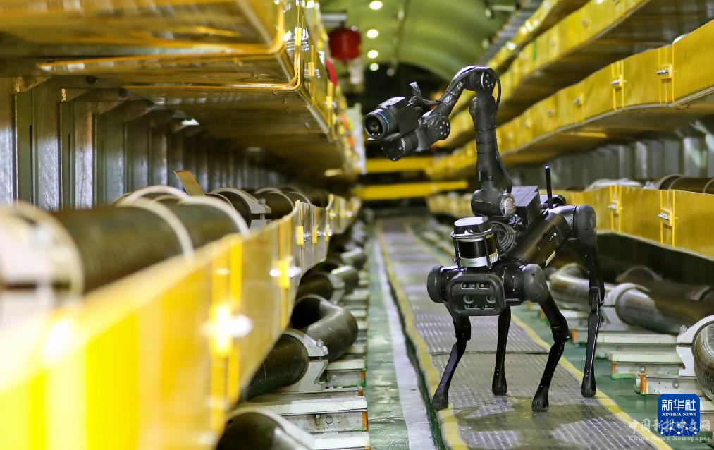 12月23日,“機(jī)器狗”四足巡檢機(jī)器人在北京市豐臺(tái)區(qū)玉泉營(yíng)電纜隧道內(nèi)開展寒潮天氣地下輸電線路巡檢。新華社圖片