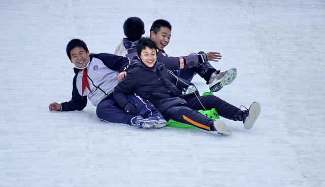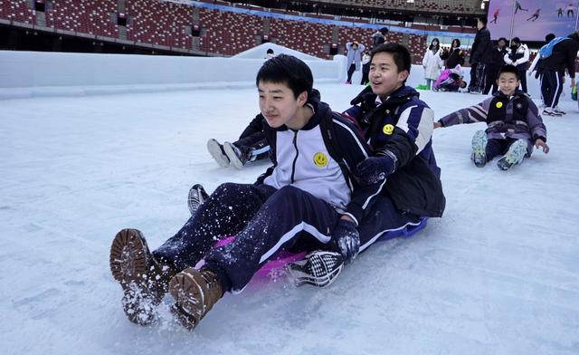 12月29日,學(xué)生們?cè)?ldquo;鳥(niǎo)巢”歡樂(lè)冰雪季上玩耍。新華社記者 李欣 攝