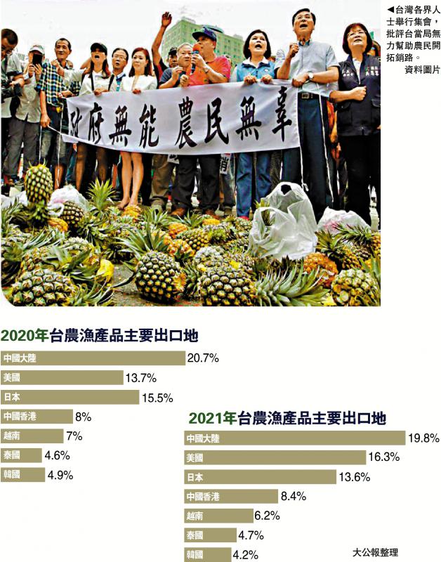對于國臺辦日前表示愿為恢復(fù)臺灣農(nóng)漁產(chǎn)品輸入大陸提供幫助,島內(nèi)農(nóng)民紛紛表示感謝,并指出大陸多年來都是臺灣農(nóng)產(chǎn)品的重要出口市場,沒有了大陸市場,農(nóng)民損失慘重,而民進黨當局雖然口口聲聲說“幫助農(nóng)民開拓新的市場”,但成效不彰,因為大陸龐大的市場是日本及東南亞市場所無法替代的。臺灣果農(nóng)洪偉慶向大公報表示,如果臺灣農(nóng)漁產(chǎn)品能夠進一步開拓大陸市場,將能有效改善臺灣農(nóng)民生計。\大公報記者 蘇榕蓉報道