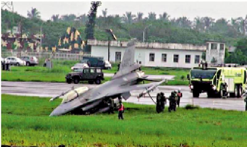圖:臺(tái)空軍F16戰(zhàn)機(jī)在訓(xùn)練時(shí)滑出跑道導(dǎo)致機(jī)頭損壞。\資料圖片