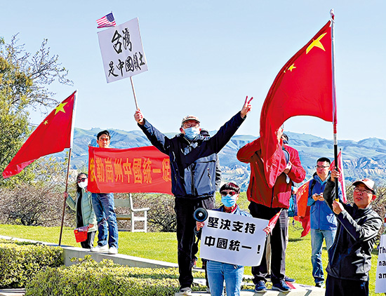 圖:4月5日,美國(guó)華僑華人在加州抗議蔡英文與美眾議長(zhǎng)麥卡錫等見(jiàn)面。\中新社