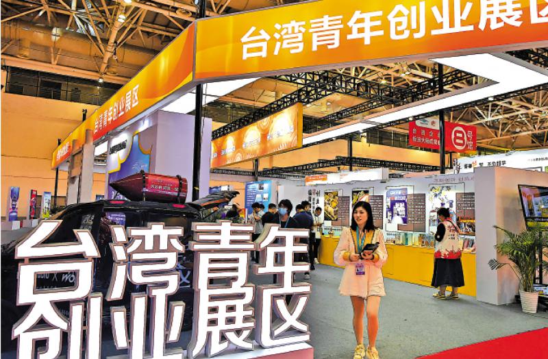 圖:第二十五屆海峽兩岸經(jīng)貿(mào)交易會(huì)最近在福州舉行。圖為海峽兩岸經(jīng)貿(mào)交易會(huì)上設(shè)置的臺灣青年創(chuàng)業(yè)展區(qū)。\中新社