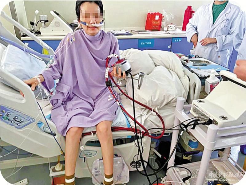 圖:2021年6月,武漢協(xié)和醫(yī)院為心衰患者程女士施行體外磁懸浮人工心臟手術(shù),并于12天后成功實(shí)施心臟移植手術(shù)。/受訪者供圖