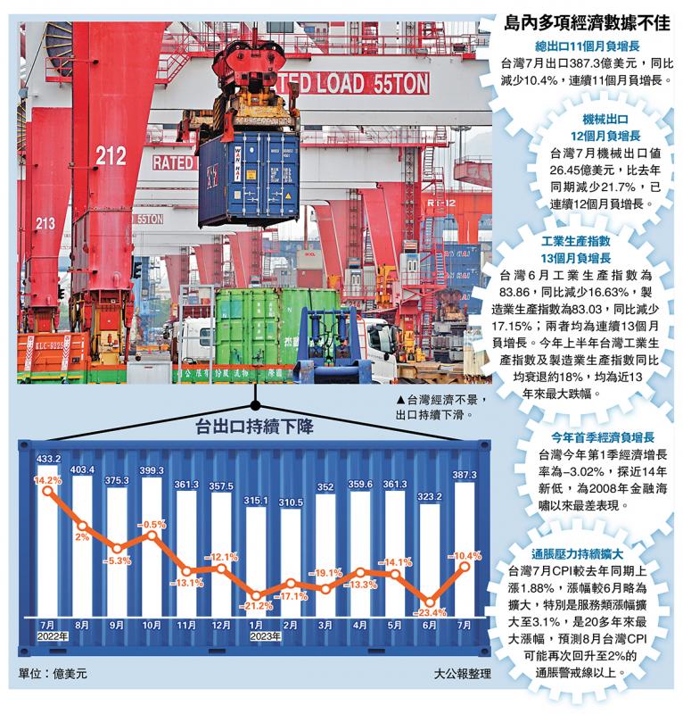 圖:臺灣經(jīng)濟(jì)不景,出口持續(xù)下滑。
