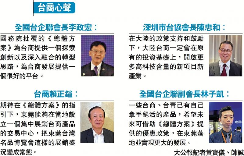 一些臺(tái)商、臺(tái)青已有自己拿手絕活的產(chǎn)品,希望未來(lái)可借助《總體方案》提供的優(yōu)惠政策,在東莞落地并實(shí)現(xiàn)更大的發(fā)展。
