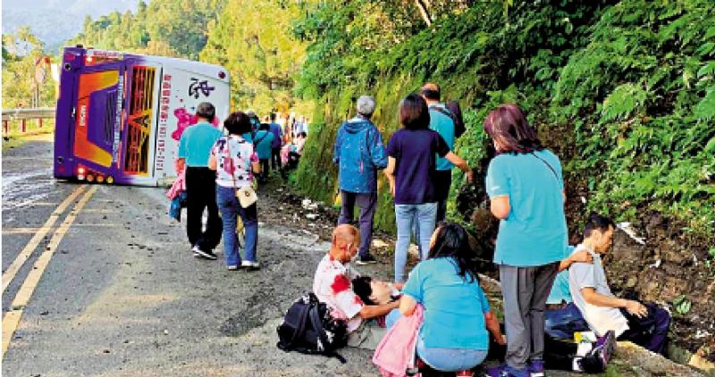 圖:一輛游覽車5日在宜蘭縣太平山風(fēng)景區(qū)旅游發(fā)生車禍。\中通社
