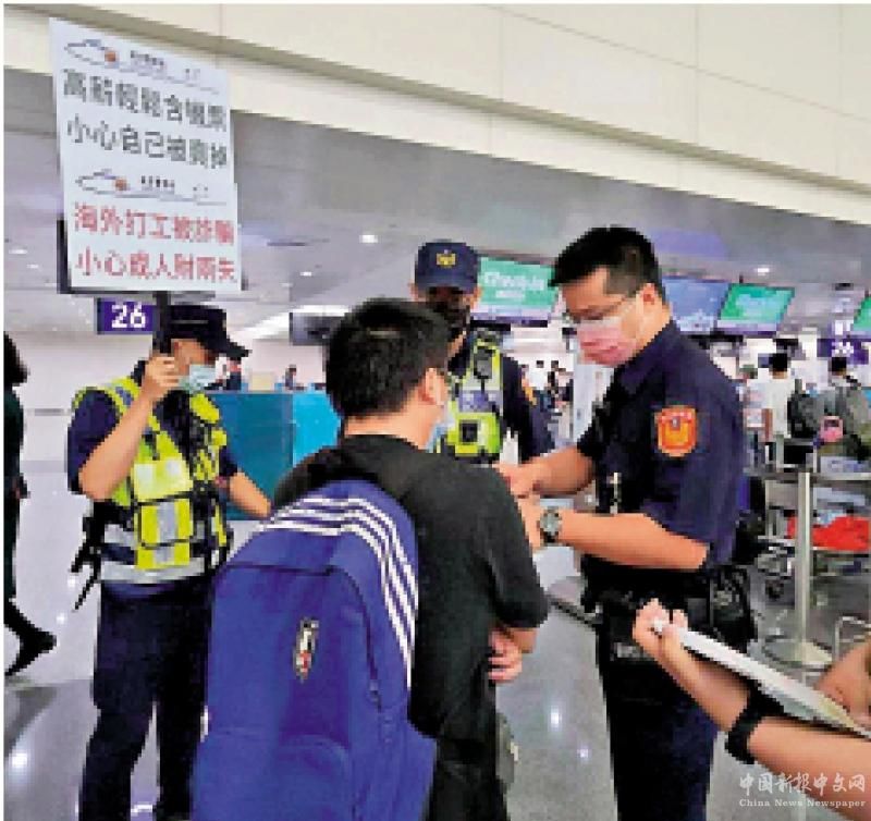 圖:臺灣詐騙案猖獗。圖為臺警方在桃園機場舉牌提醒民眾不要被騙。\資料圖片