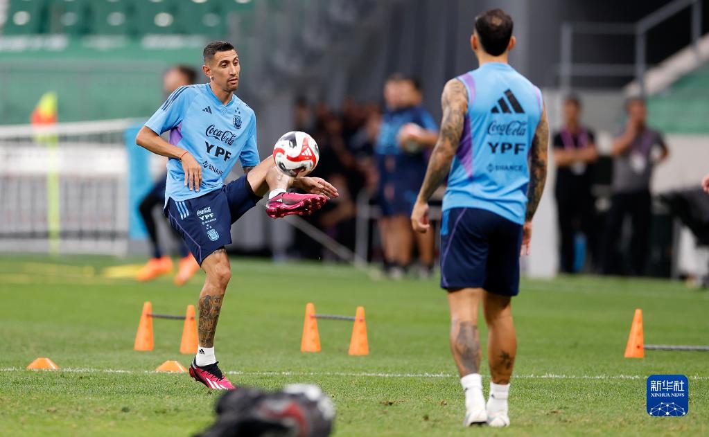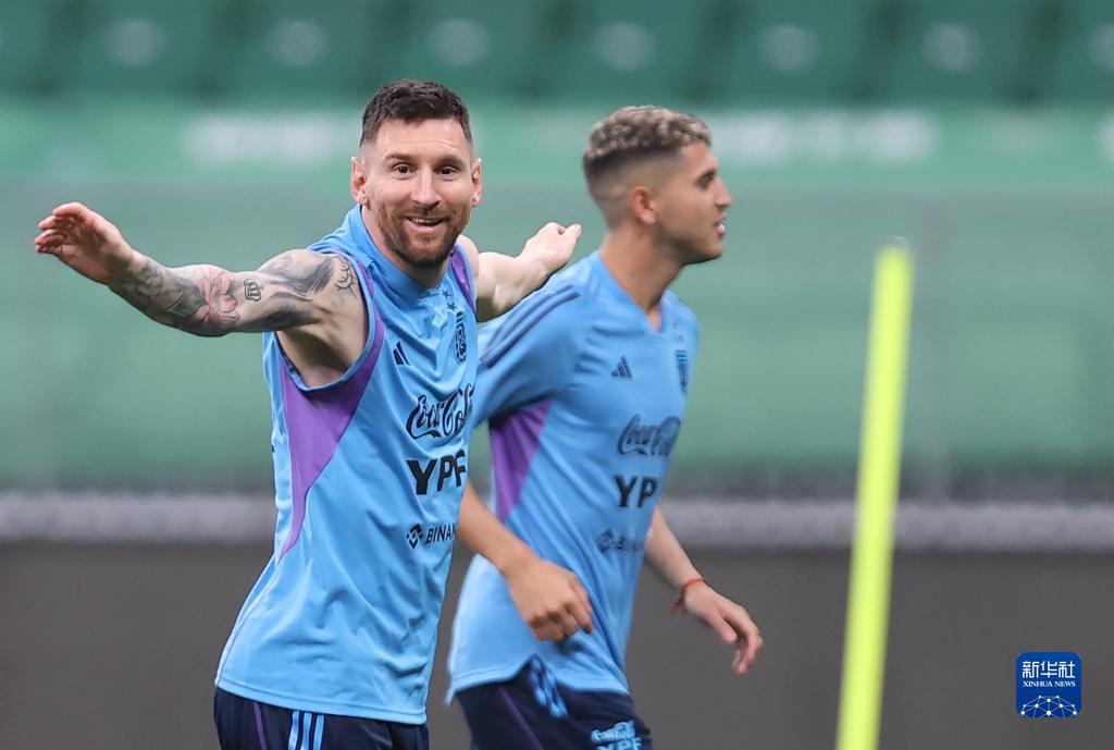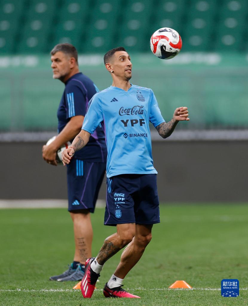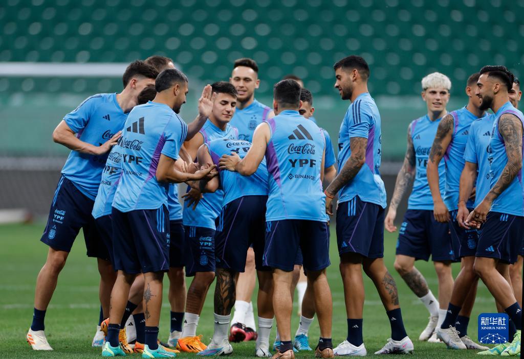 當日,阿根廷隊在北京工人體育場進行賽前訓練,備戰(zhàn)將于6月15日與澳大利亞隊的友誼賽。