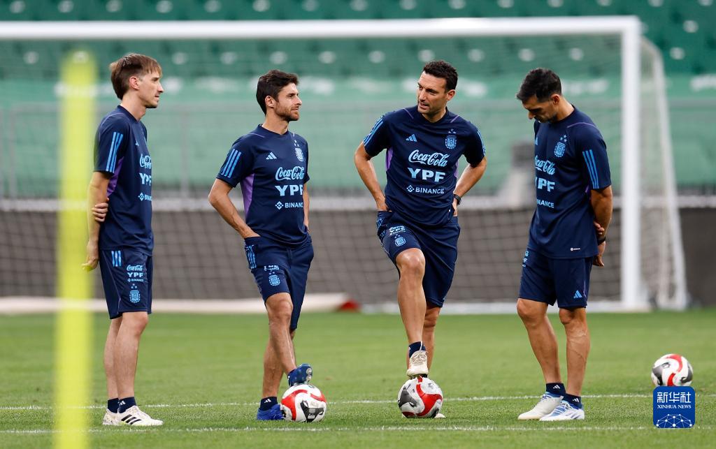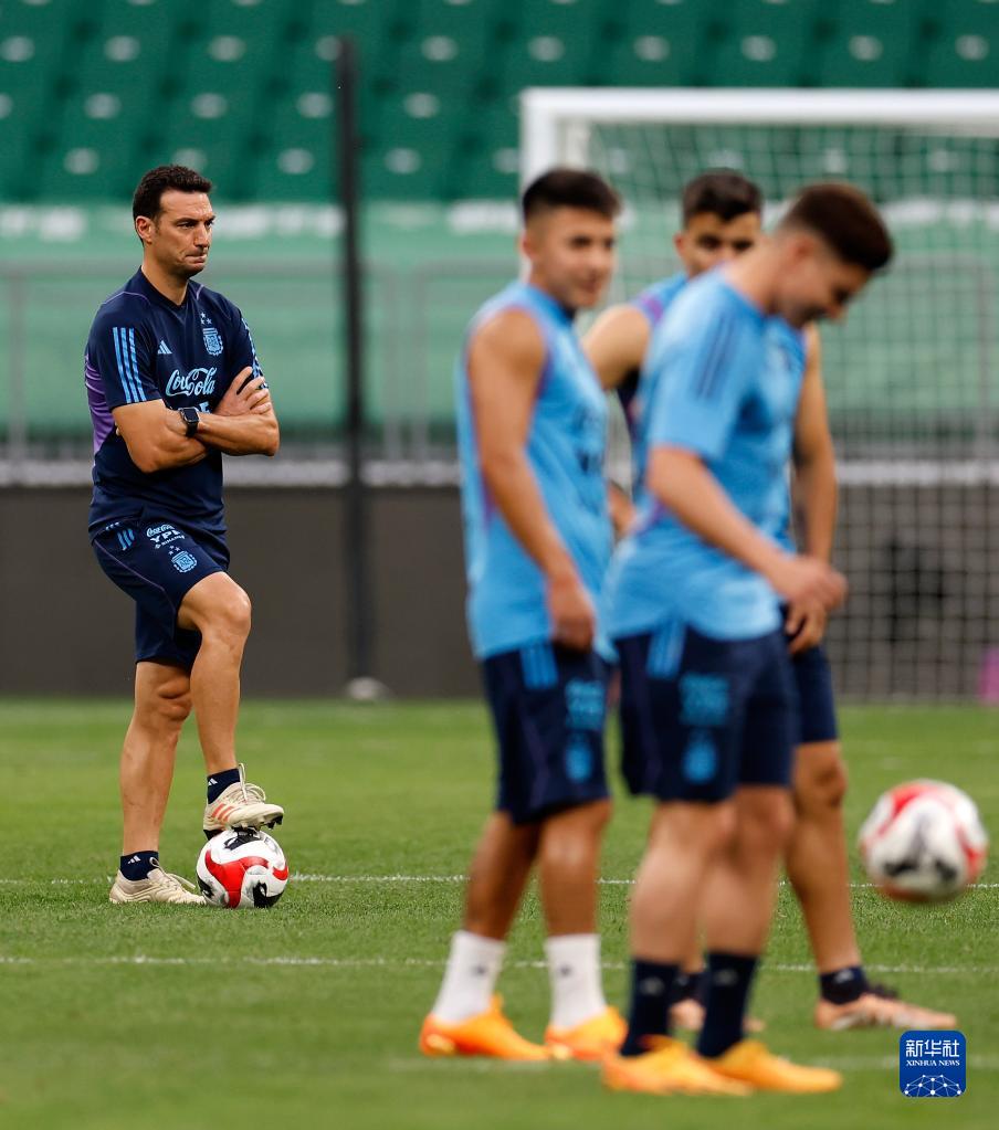 6月14日,阿根廷隊主教練斯卡洛尼(右二)在訓練中。新華社記者 王麗莉 攝