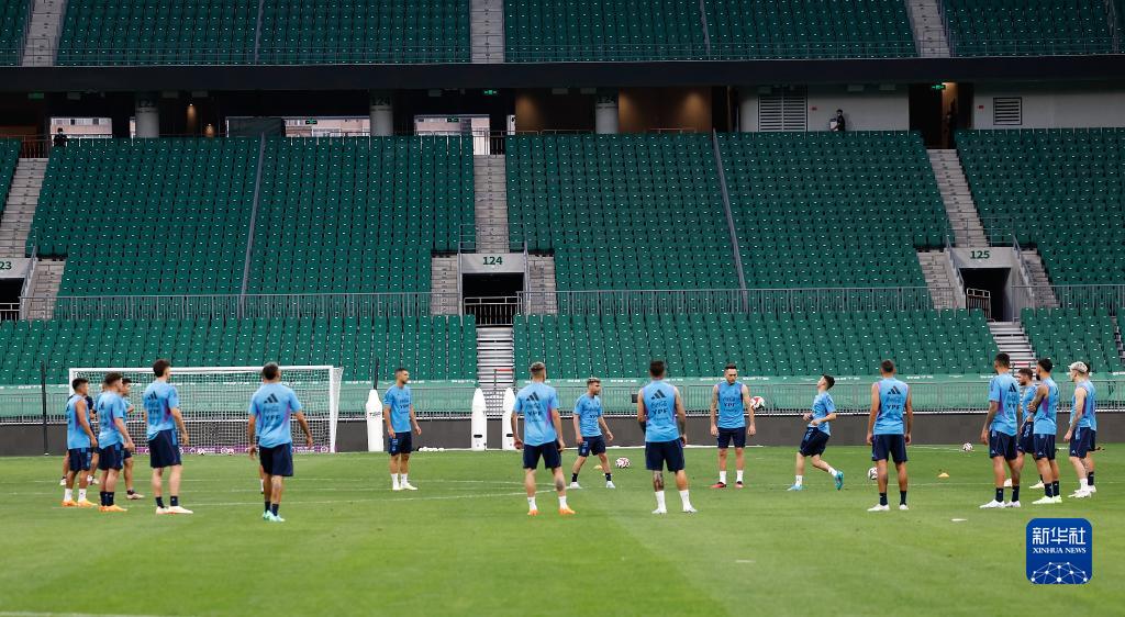 6月14日,阿根廷隊球員在訓練中。新華社記者 賈浩成 攝