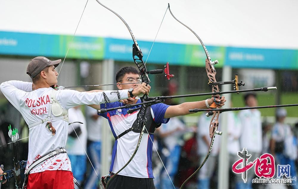男子反曲弓團(tuán)體1_8淘汰賽現(xiàn)場。倫曉璇攝影