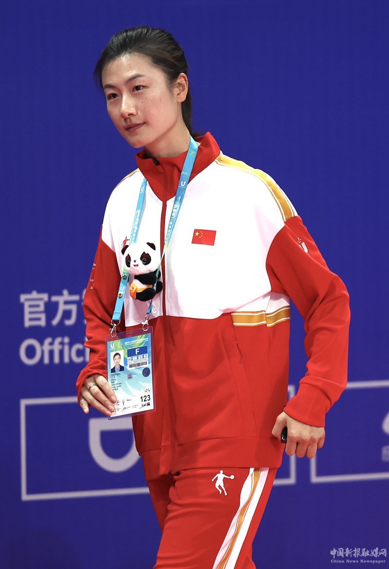 8月1日,成都大運(yùn)會(huì)中國(guó)大學(xué)生代表團(tuán)乒乓球隊(duì)副領(lǐng)隊(duì)丁寧在比賽現(xiàn)場(chǎng)。中國(guó)日?qǐng)?bào)記者 魏曉昊 攝