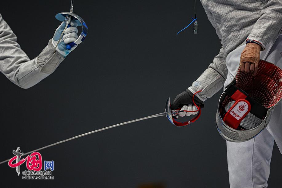 8月5日,在成都大運(yùn)會(huì)擊劍男子佩劍團(tuán)體決賽中,韓國(guó)隊(duì)對(duì)陣意大利隊(duì),雙方“劍拔弩張”。 中國(guó)網(wǎng)記者 倫曉璇 攝