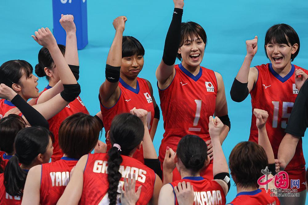 8月6日晚,成都大運會女排決賽舉行,日本隊球員互相加油助威。中國網(wǎng)記者 倫曉璇 攝