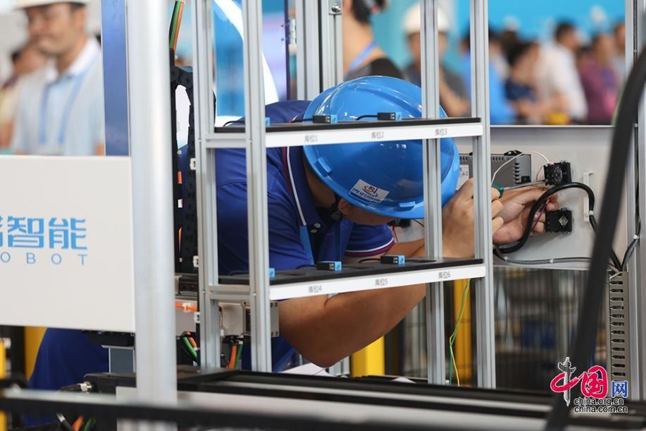 9月16日,第二屆全國技能大賽在天津開賽。圖為工業(yè)機器人系統(tǒng)操作項目選手正在參加比賽。中國網(wǎng)記者 倫曉璇 攝