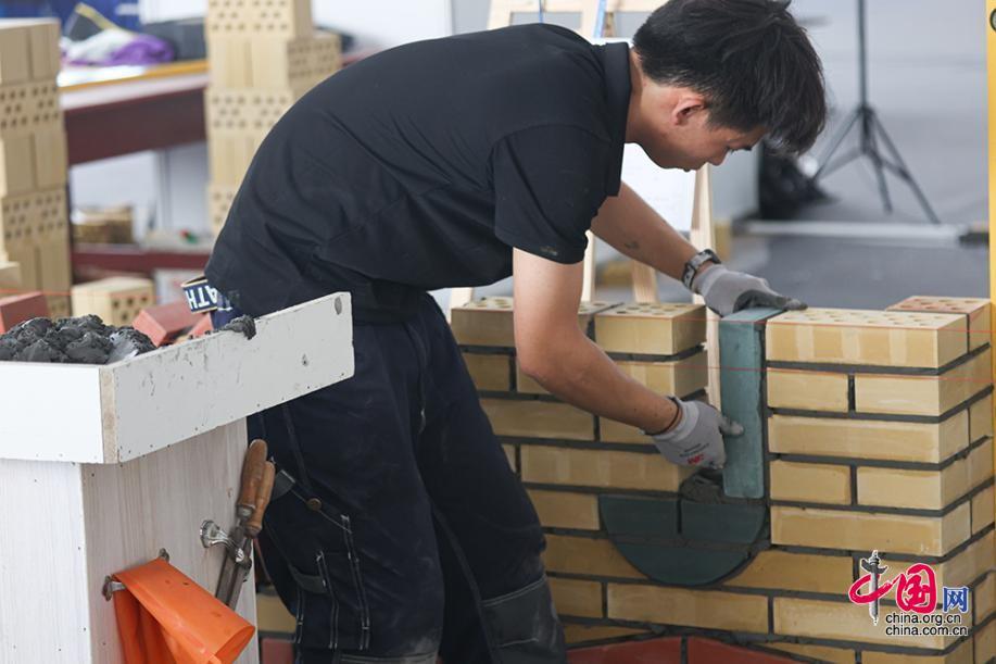 9月16日,第二屆全國技能大賽在天津開賽。圖為砌筑項目選手正在參加比賽。中國網(wǎng)記者 倫曉璇 攝