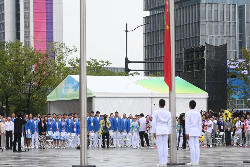 新華社杭州9月16日電(記者胡佳麗、王君寶、吳帥帥)杭州第19屆亞運會亞運村開村儀式暨中國體育代表團歡迎儀式16日在杭州亞運村旗幟廣場舉行。