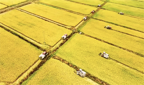 中國新報訊(李小華)金秋時節(jié),又逢秋分,稻黍成熟、瓜果飄香,豐收的喜悅彌漫衡陽縣庫宗橋鎮(zhèn)華山村,稻田里九臺收割機機聲隆隆,來往不息,村部廣場掌聲陣陣,喝彩不斷。9月23日,衡陽縣慶祝第六屆“中國農民豐收節(jié)”暨“角山米業(yè)杯”籃球大賽(村BA)啟動儀式在這里舉行。