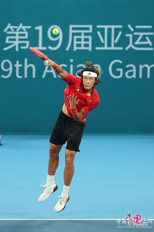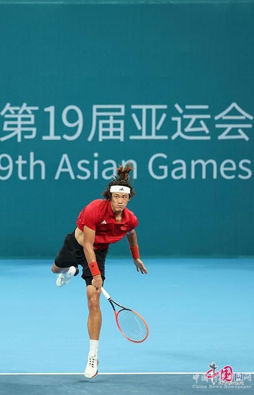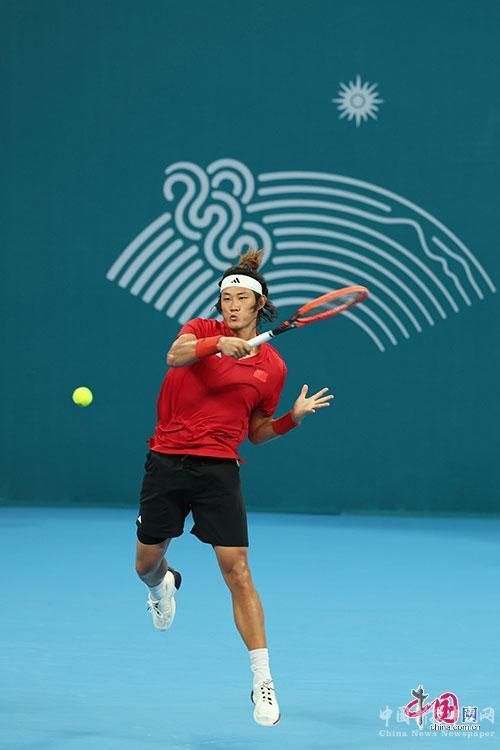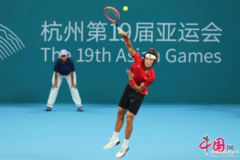 9月30日,杭州亞運(yùn)會(huì)網(wǎng)球男單決賽上,張之臻對(duì)陣日本選手綿貫陽(yáng)介,最終張之臻以6-4、7-6,總比分2-0擊敗對(duì)手,奪得金牌。中國(guó)網(wǎng)記者 董寧 攝影