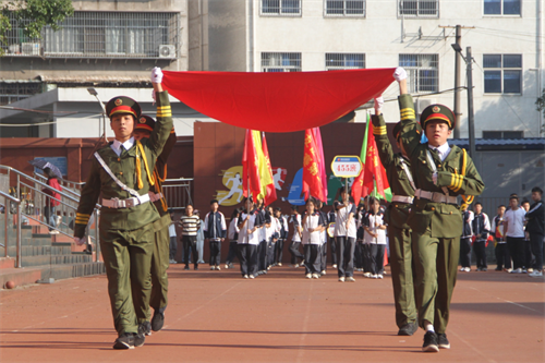 在雄壯的國(guó)歌聲中,五星紅旗緩緩升起。莊嚴(yán)的升旗儀式后,校長(zhǎng)許潤(rùn)四作開(kāi)幕式致辭。他首先代表學(xué)校對(duì)本屆校運(yùn)會(huì)的順利召開(kāi)表示祝賀,對(duì)精心籌備校運(yùn)會(huì)的教職工和同學(xué)們表示感謝,并向參會(huì)的裁判員和運(yùn)動(dòng)員致敬。祝愿同學(xué)們提高健康素質(zhì)的同時(shí),還能砥礪意志品質(zhì)和人格精神,培養(yǎng)團(tuán)結(jié)、合作、堅(jiān)強(qiáng)、奉獻(xiàn)和友愛(ài)的高尚情操。希望運(yùn)動(dòng)員們團(tuán)結(jié)協(xié)作,頑強(qiáng)拼搏,發(fā)揚(yáng)奧林匹克“更高、更快、更強(qiáng)”的精神。同時(shí)叮囑各班精心組織,自覺(jué)維護(hù)比賽秩序,全體師生共同努力,把本屆運(yùn)動(dòng)會(huì)辦成一個(gè)“團(tuán)結(jié)、文明、創(chuàng)新、奮進(jìn)”的盛會(huì),為推動(dòng)衡外德智體美勞全面發(fā)展作出新的貢獻(xiàn)!