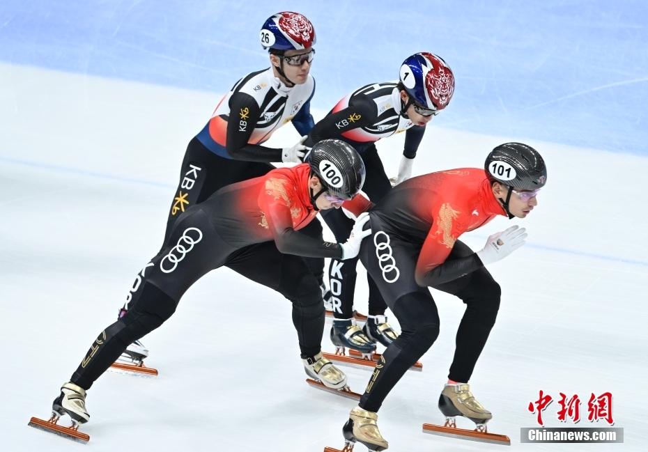 12月10日,2023-2024賽季國(guó)際滑聯(lián)短道速滑世界杯北京站的比賽在北京首都體育館進(jìn)行。在男子5000米接力決賽中,由任子威、劉少昂、孫龍、劉少林組成的中國(guó)隊(duì)以6分58秒280的成績(jī)獲得銅牌。圖為中國(guó)選手任子威(紅衣)在比賽中。中新社記者 趙文宇 攝