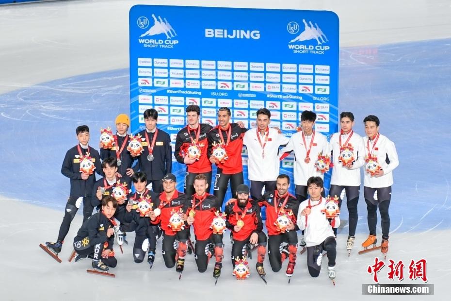 12月10日,2023-2024賽季國(guó)際滑聯(lián)短道速滑世界杯北京站的比賽在北京首都體育館進(jìn)行。在男子5000米接力決賽中,加拿大隊(duì)(紅衣)以6分55秒964的成績(jī)獲得金牌,韓國(guó)隊(duì)(黑衣)以6分56秒717的成績(jī)獲得銀牌,由任子威、劉少昂、孫龍、劉少林組成的中國(guó)隊(duì)(白衣)以6分58秒280的成績(jī)獲得銅牌。圖為頒獎(jiǎng)儀式。中新社記者 趙文宇 攝