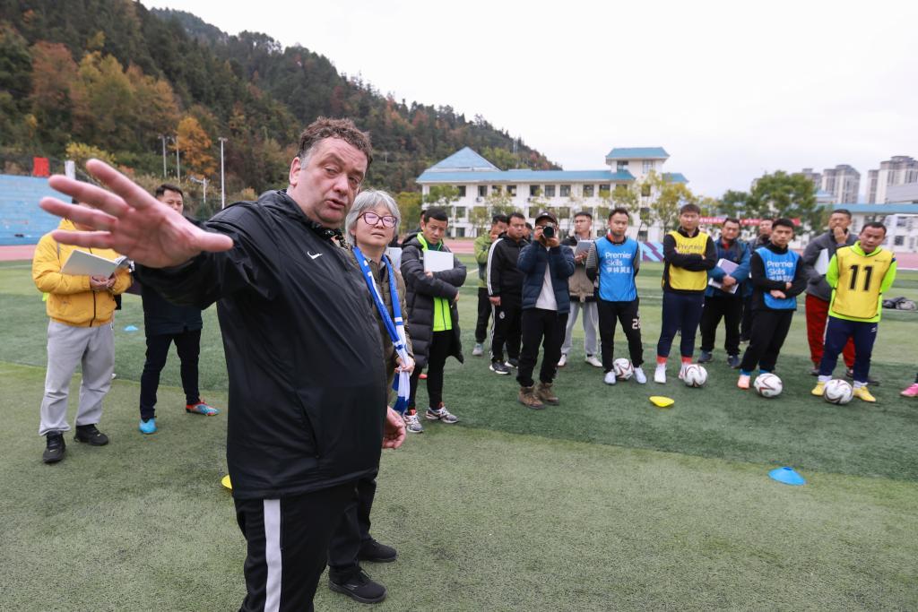 牽手英超,是“村超”走向世界的一次重要探索。“學(xué)轉(zhuǎn)英超”基層足球教練培訓(xùn)項目日前在榕江縣第三高級中學(xué)舉行,在英國大使館文化教育處中國區(qū)足球發(fā)展高級經(jīng)理沃倫·利特的帶領(lǐng)下,榕江當?shù)氐?4名學(xué)員接受了為期四天的培訓(xùn)。