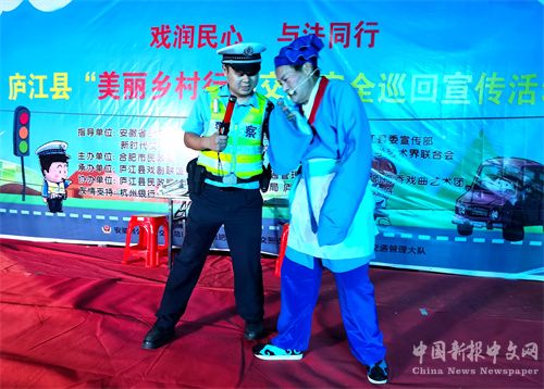 演出中,演員在節(jié)目中以生動(dòng)的故事情節(jié),巧妙嵌入公安交警的以案釋法,向在場(chǎng)觀看演出的村民進(jìn)行了酒駕、醉駕以及佩戴頭盔等項(xiàng)交通安全警示教育,收到良好效果。據(jù)了解,演出將在該縣各地巡回推出。       (巢志斌  攝)