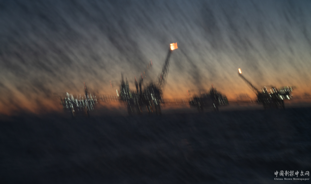 初春時節(jié),渤海灣畔依然寒意逼人,仍有冰雪,金屬鐵架摸起來無比冰冷。瑟瑟寒風中,建設者們在各個工程建造現(xiàn)場努力工作,為重器下海奮斗。