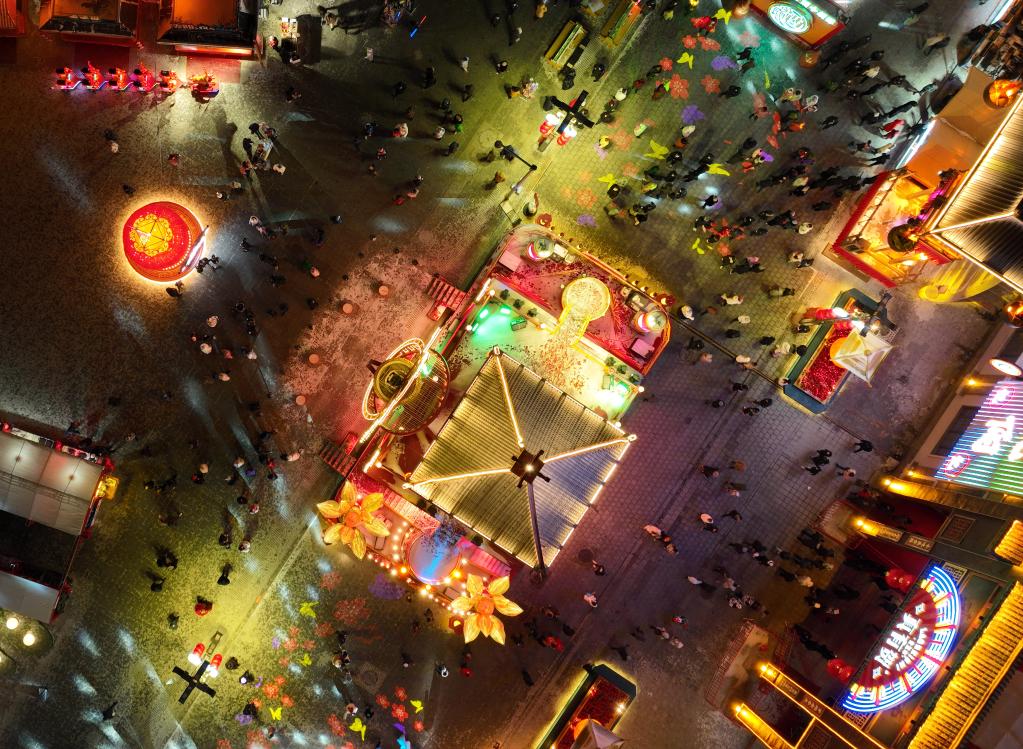 1月23日,市民在沈陽新春皇寺廟會游玩(無人機照片)。(新華社記者楊青攝)