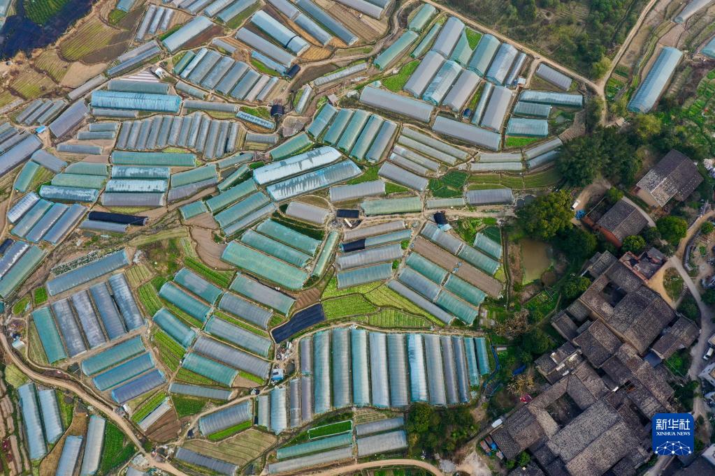 2月26日拍攝的福州市閩侯縣南通鎮(zhèn)蔬菜基地景觀(無人機照片)。